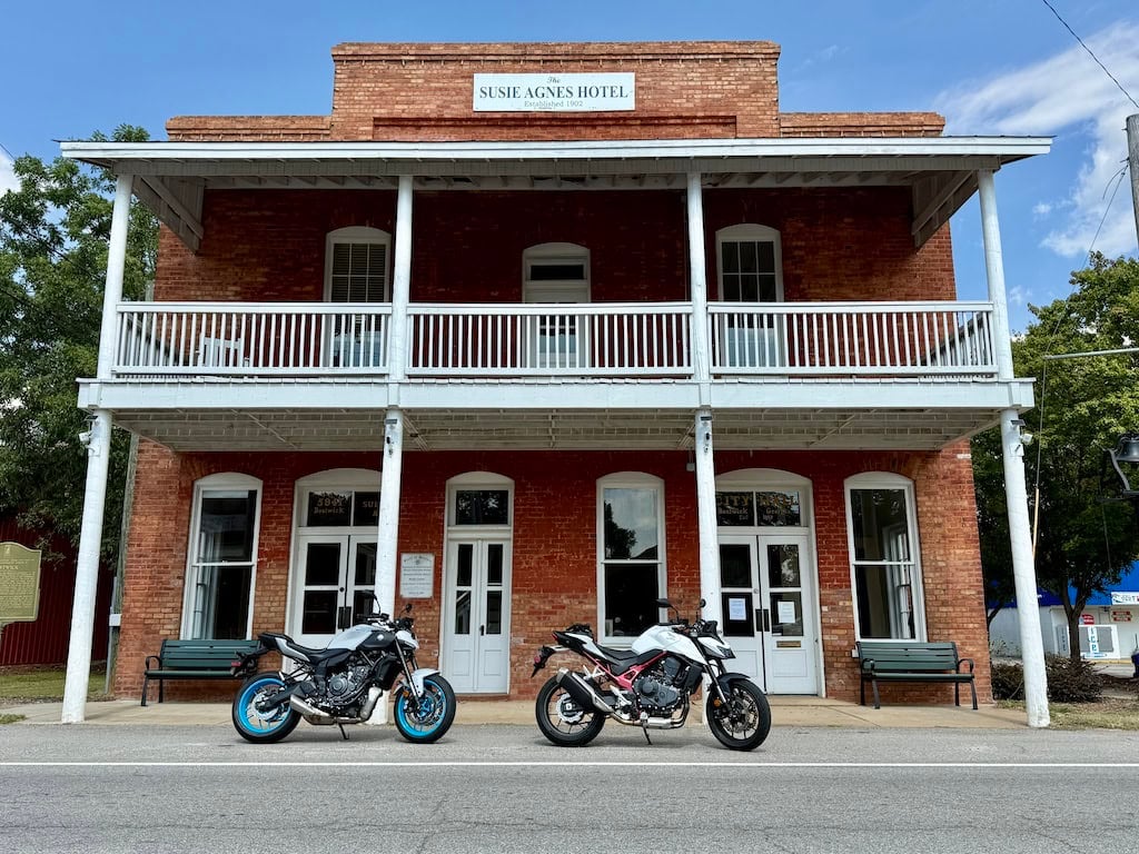 Over the summer, we had the opportunity to sample the new Honda CB750 Hornet, and the 2024 Yamaha MT-07 last fall. Both of these are fantastic, affordable middleweight naked sportbikes, and we loved them both. We got the bright idea of riding them together, side-by-side and nose-to-tail, since they are comparable in size, displacement and rider triangle. After pitching the idea to Honda, who wholeheartedly jumped at it, Yamaha must have read our twisted minds, and preempted us by calling and offering a new 2025 MT-07, once they learned we had the Hornet.