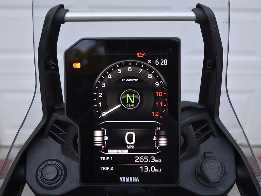 Navigating those rides was made easier by the new 6.3-inch vertical TFT display. The dash is well lit and comes with two standard themes (Street and Explorer). I preferred the old-school Street display that presents the rider with analog-inspired gauges. Information was found quickly, and exploring the modes and settings was simple. I also opted to connect the Ténéré 700 to the Yamaha Motorcycle Connect phone app. Installing the app and syncing the bike to it was not complicated, making navigation a breeze. With Bluetooth earbuds, the Yamaha Motorcycle Connect app enabled me to hear turn-by-turn instructions that were complimented with a visual representation on the dashboard.