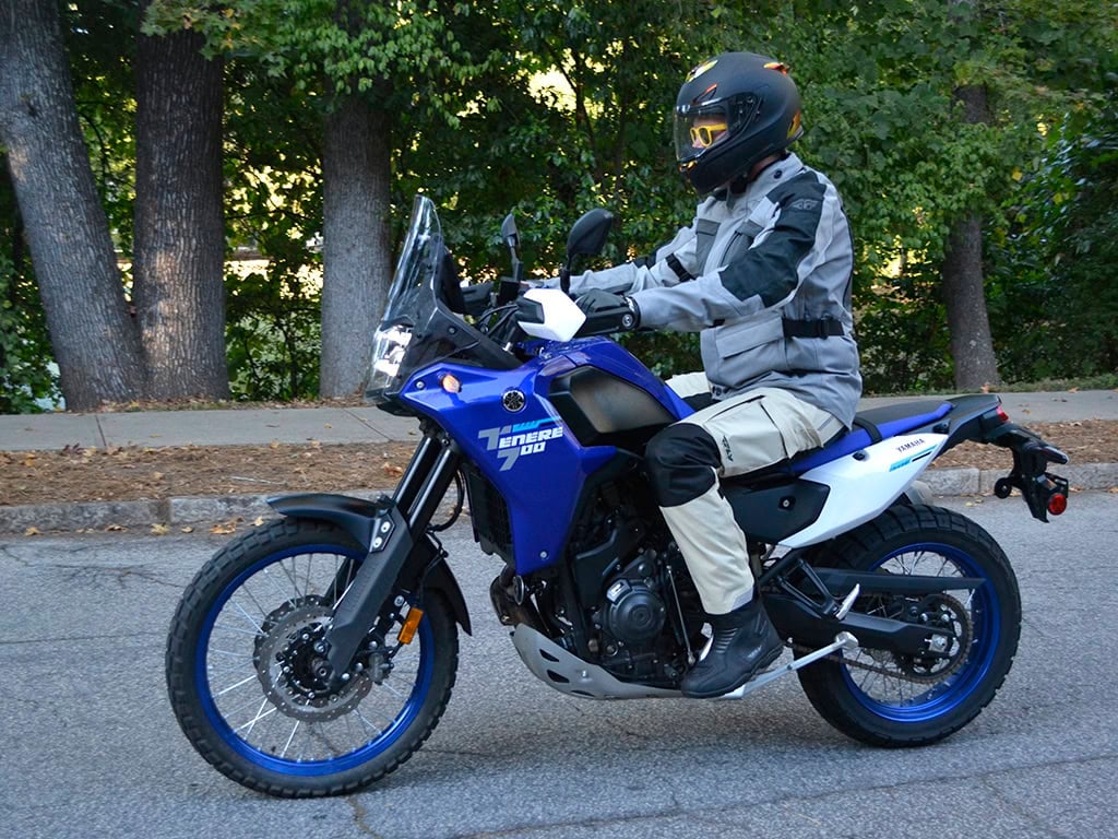 “For 6’2” I fit well on the Tenere 700, which was refreshing. The rider triangle was very comfortable for me and I was able to keep up with my buddies on KLRs and Suzuki 650s with no problem. In fact, I would say I could have blown them away on the street portion of our rides. The bike did feel heavy during a few creek crossings and the stock suspension and seat could have been more forgiving when hitting gravel road pot holes. The smallish windshield did little to nothing for me at speeds on the street. Yet all-in-all, I enjoyed my seat time on the Tenere and I would seriously consider it should I decide to buy a dual sport bike.”