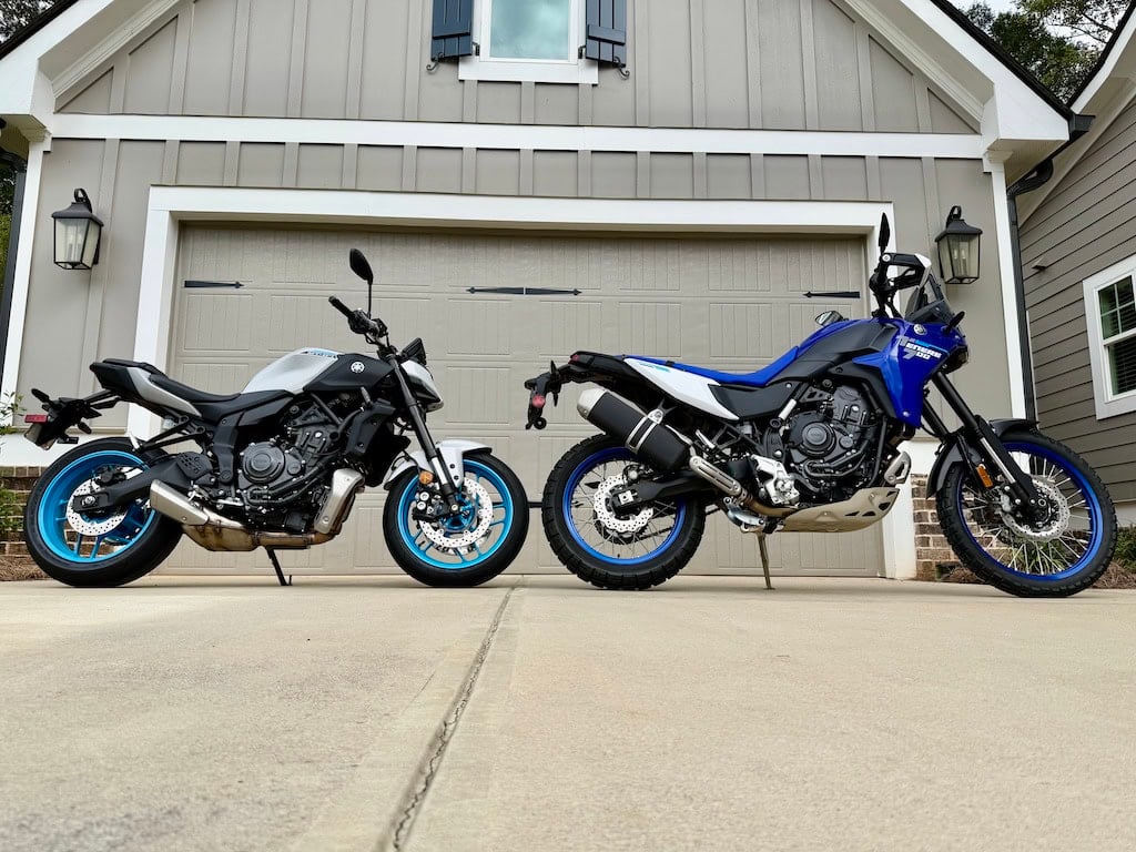 The MT-07 Rob and Drew sampled this summer, and the Ténéré 700 I rode. Same mill, entirely different applications.