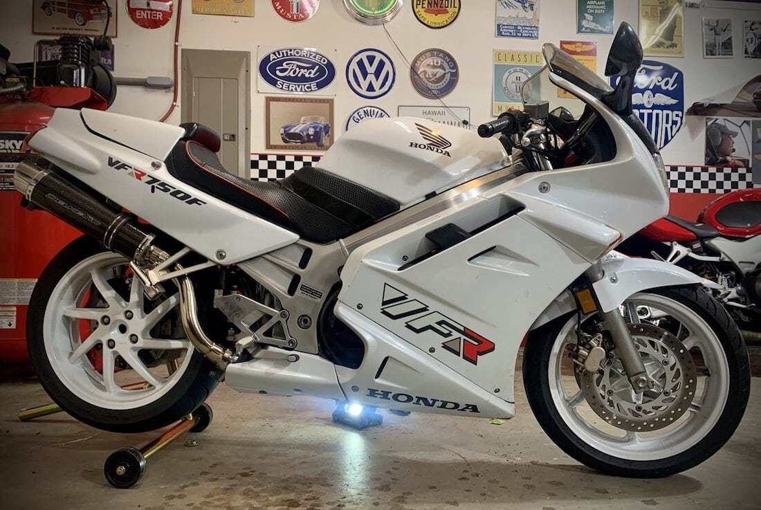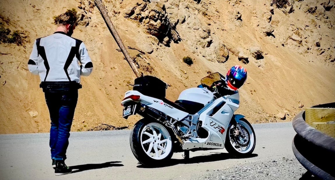 In a digital world driven by touchscreens, scrolling menus and artificial intelligence there lives a Unicorn, a 1993 VFR 750. In this electric world measured by binary strings of 1s and 0s she is a deliciously analog endangered species driven by feel, a deft but heavy touch, proper feel at the levers. Her cockpit is full of spinning number odometers and sweeping white needles on black numbered faceplates that don’t disappear when the bike turns off. When I feel saturated by screen time and need to unplug and return to the heart of motorcycling, the core of who I am, I ride The Unicorn.