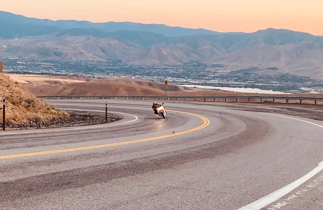 Making the ascent above Wenatchee, WA, carving some tasty curves.