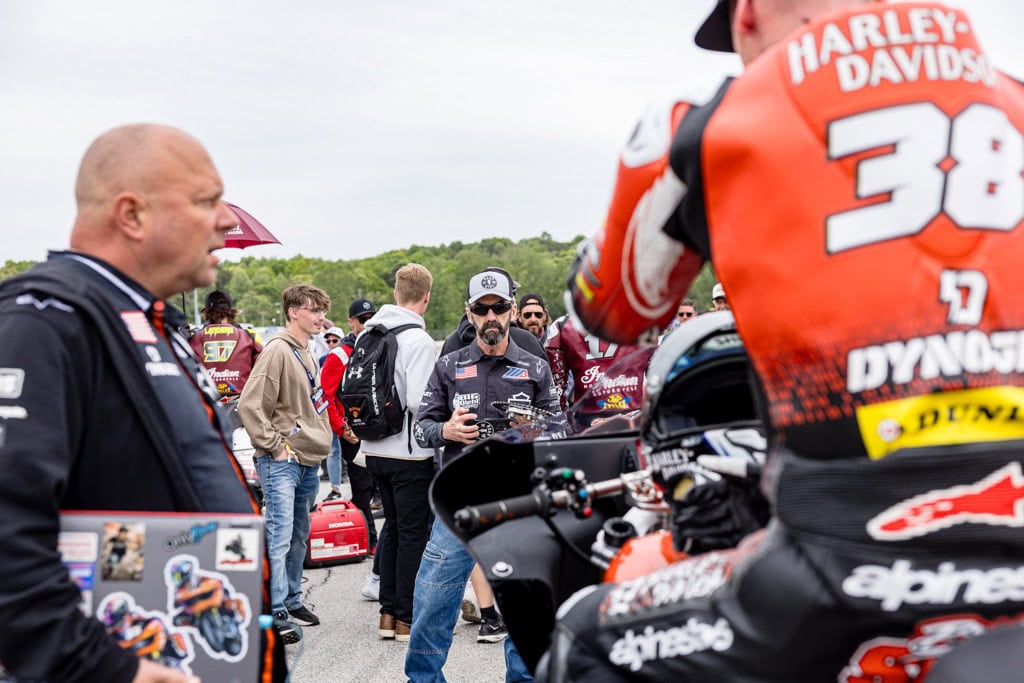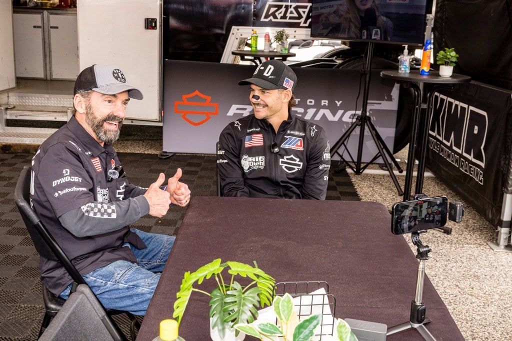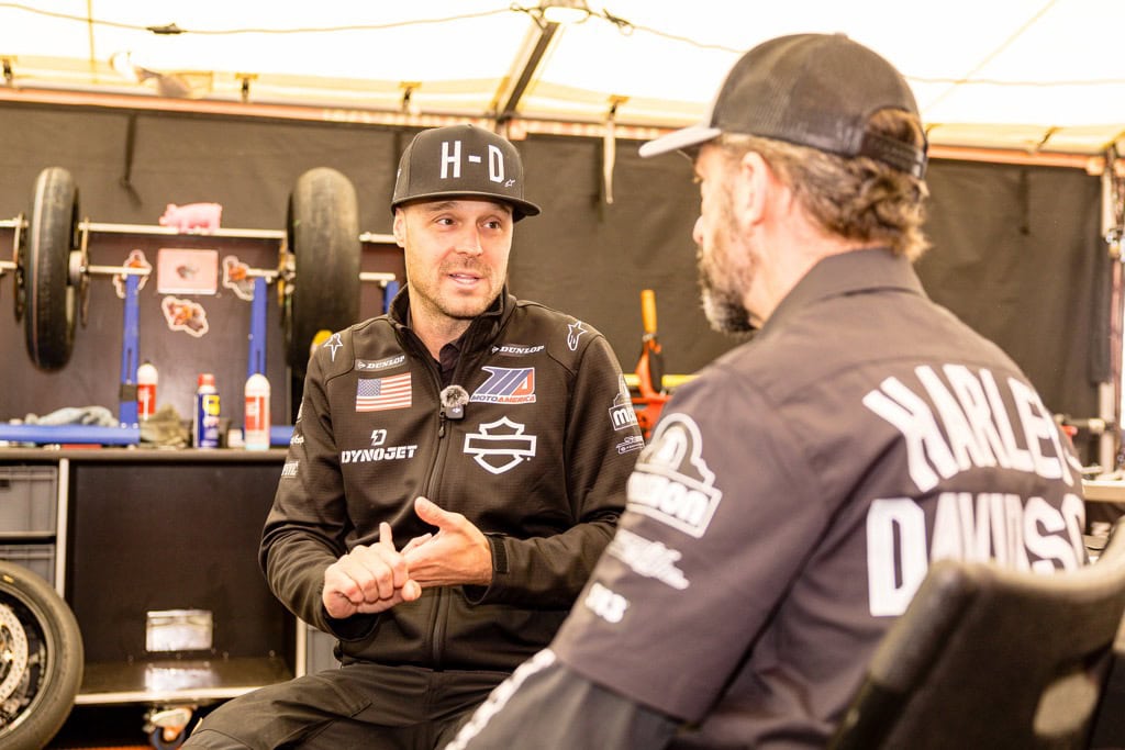 Chatting with H-D team principal Jason Kehl, then with satellite rider James Rispoli. Photos by Tim Lester Images.