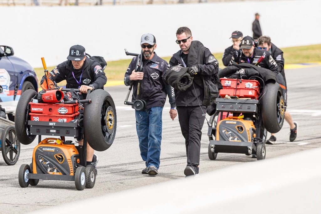 We had been afforded a unique opportunity to be “honorary pit crew members“ for the Sunday race of the MotoAmerica King of the Baggers series with the Harley-Davidson x Dynojet Factory Racing Team. Thrilled and honored, photographer Tim Lester and I met Jeff Schuessler and Elaina Golemgeske of H-D on Saturday, then joined them Sunday morning to prepare for our day with the team.