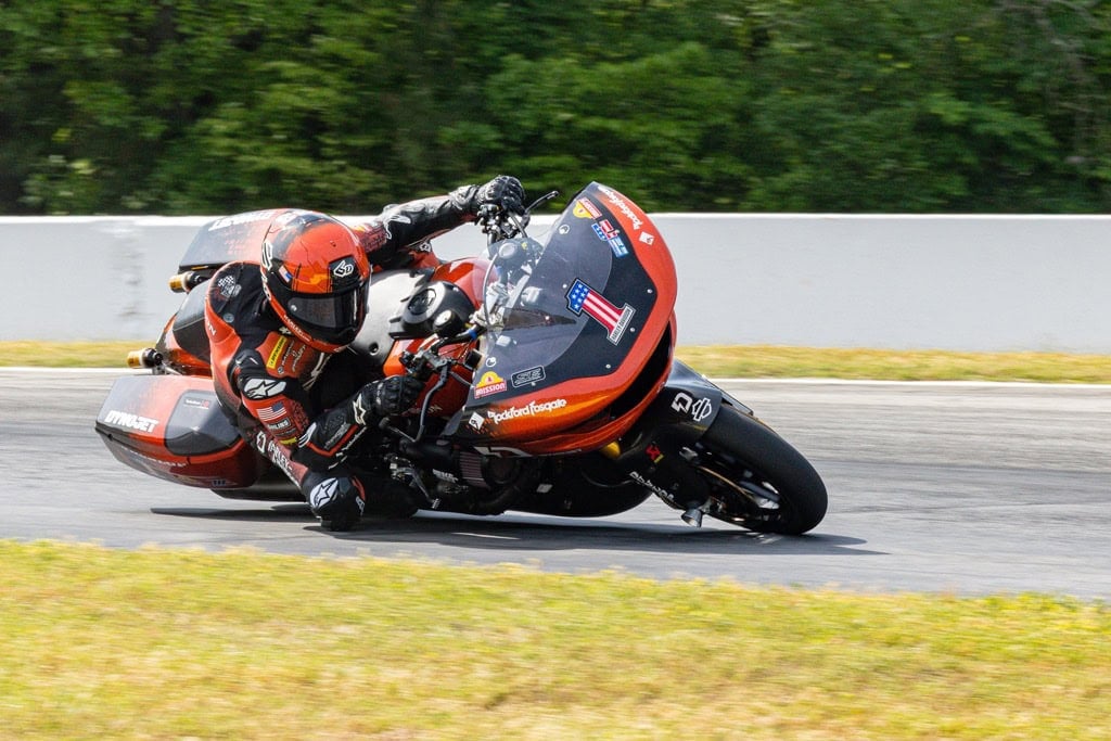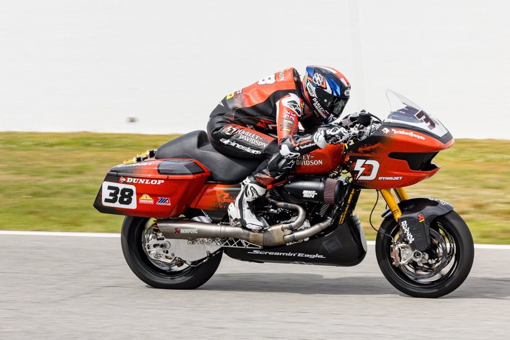 #38 Bradley Smith of Harley-Davidson x Dynojet Factory Racing Team, pinning it on the front straight at Road Atlanta during the MotoAmerica King of the Baggers Race 2. Photo by Tim Lester Images.