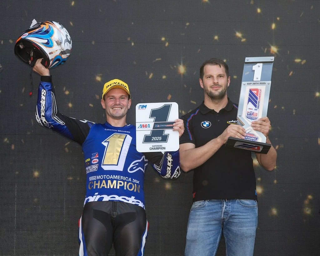 If the 2025 MotoAmerica Superbike Championship could be summed up in just a few words this year, “dramatic and unpredictable” would be a pretty good description. And it certainly held true in the final race round at New Jersey Motorsports Park over the weekend. The season finale held three Superbike races, and the top three contenders for the title were within a few points of each other going into the weekend. Number 1 plate holder Josh Herrin held third place, still within striking distance of holding his title, with 292 season points. 5-time national champion Cameron Beaubier had 306 points, and the surprising class leader entering NJMP was the scrappy outlier Bobby Fong with 314.