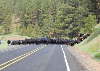 The local ranchers drive hundreds of cattle down this mid-Oregon asphalt treasure, cowboys and cowgirls working the herd while dogs hunt down the stragglers.  When you look at the road, you see why.