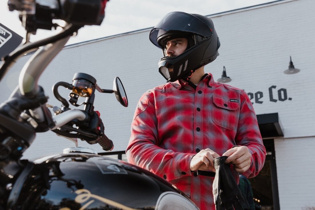 The trick this time of year is maintaining the temperature balance, so my gear can’t be too heavy nor too light. The Street & Steel Mission Moto shirt happened to catch my eye, mainly for its red and grey flannel pattern, but also for its casual look. It is definitely my style.