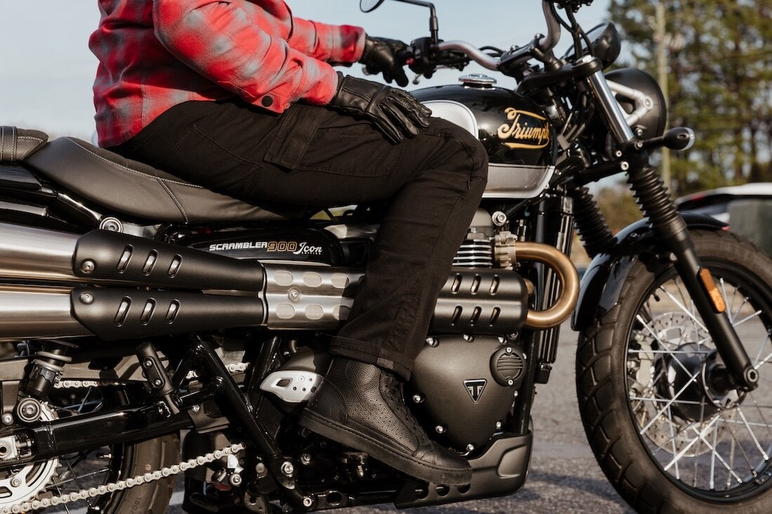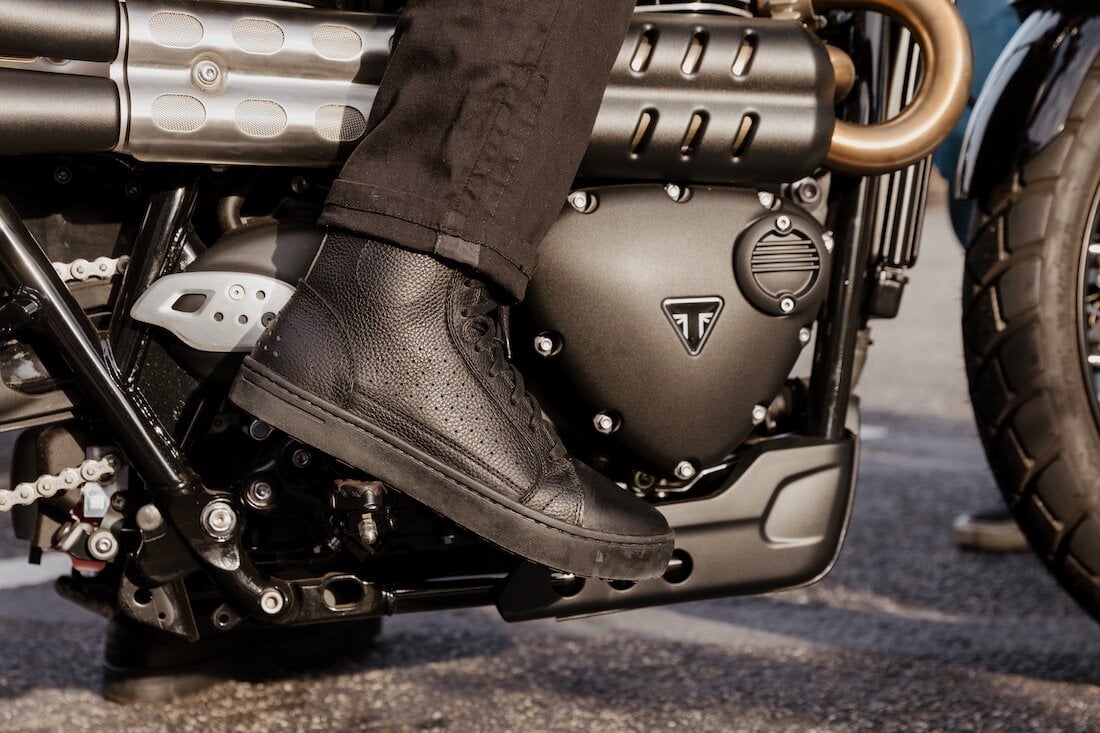 And for kicks? Street & Steel’s Kickstarter 2 riding shoes. They lean casual, but they’ve got the right reinforcements built in—toe, heel, ankle—and a sole that actually holds up on the pegs. They fit right in with my casual yet protective vibe. They are comfortable on and off the bike all day and to the untrained eye appear as if they are normal high-top sneakers.