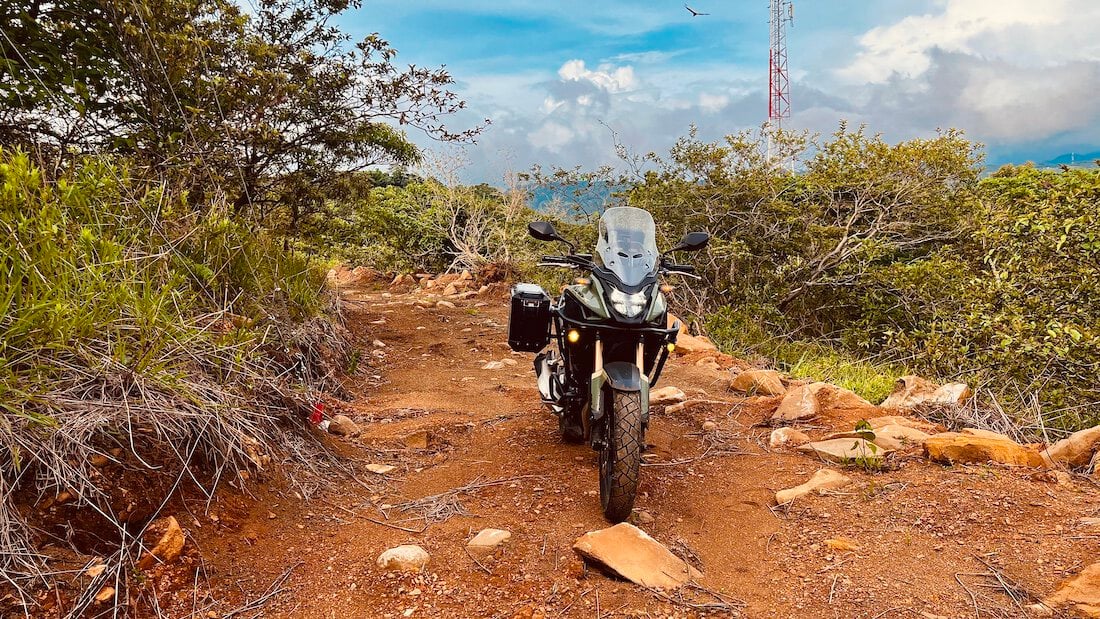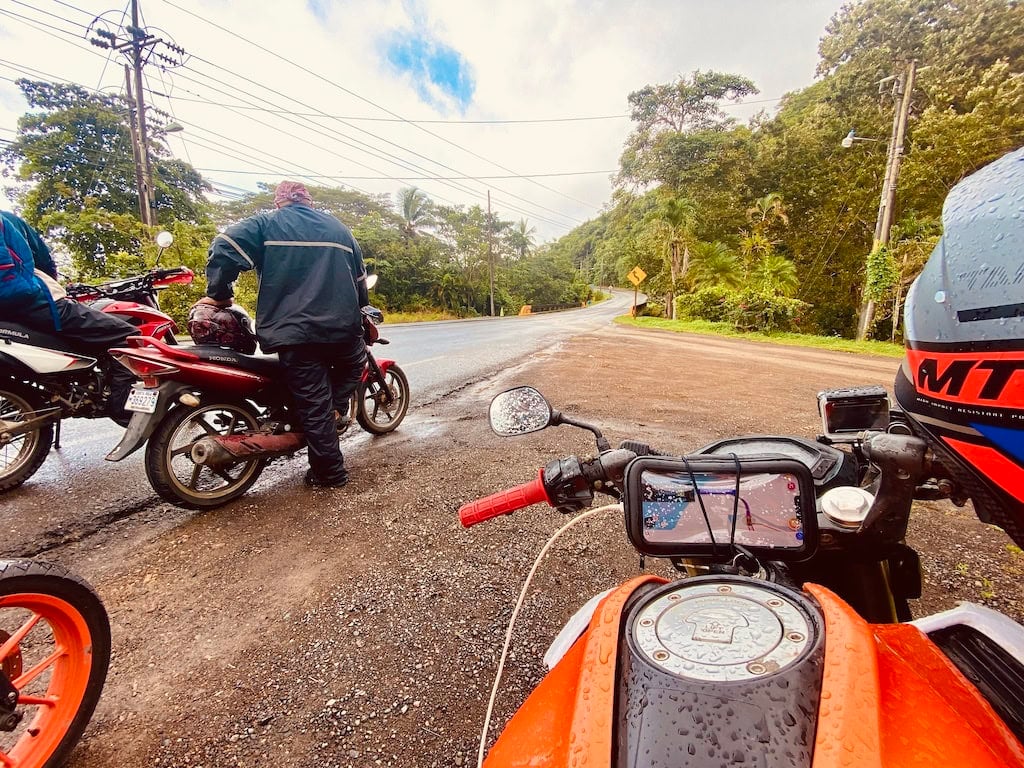 Sporting my homemade stainless steel trunk platform that coincidentally perfectly fits a cooler, I rode through mountain passes near Arenal Volcano, was forced to traverse through Tilarán, with “paved road” conditions normally reserved for an active war zone, featuring bowling-ball-sized chunks of asphalt and concrete that resemble the aftermath destruction of a roadside IED. Picture pitch-black night rides through the cloud forest, two-foot visibility through high-altitude jungle fog, 60-degree inclines and declines woven between the mountain curves, missing guardrails only interrupted by single-lane suicide passes on the outside ridge of a poorly marked hairpin turn. These single lanes test the resolve of the most experienced rider, nerves on edge praying you aren’t about to try your fate against the front end of a bus headed up the mountain. I took a few rides two-up in flooding tropical rain for seven hours, crossed rivers, dropped the bike, bent a slider, broke a wheel on a canyon-sized pothole 100 miles into a 300-mile journey, and then… eventually moved back to the U.S.
