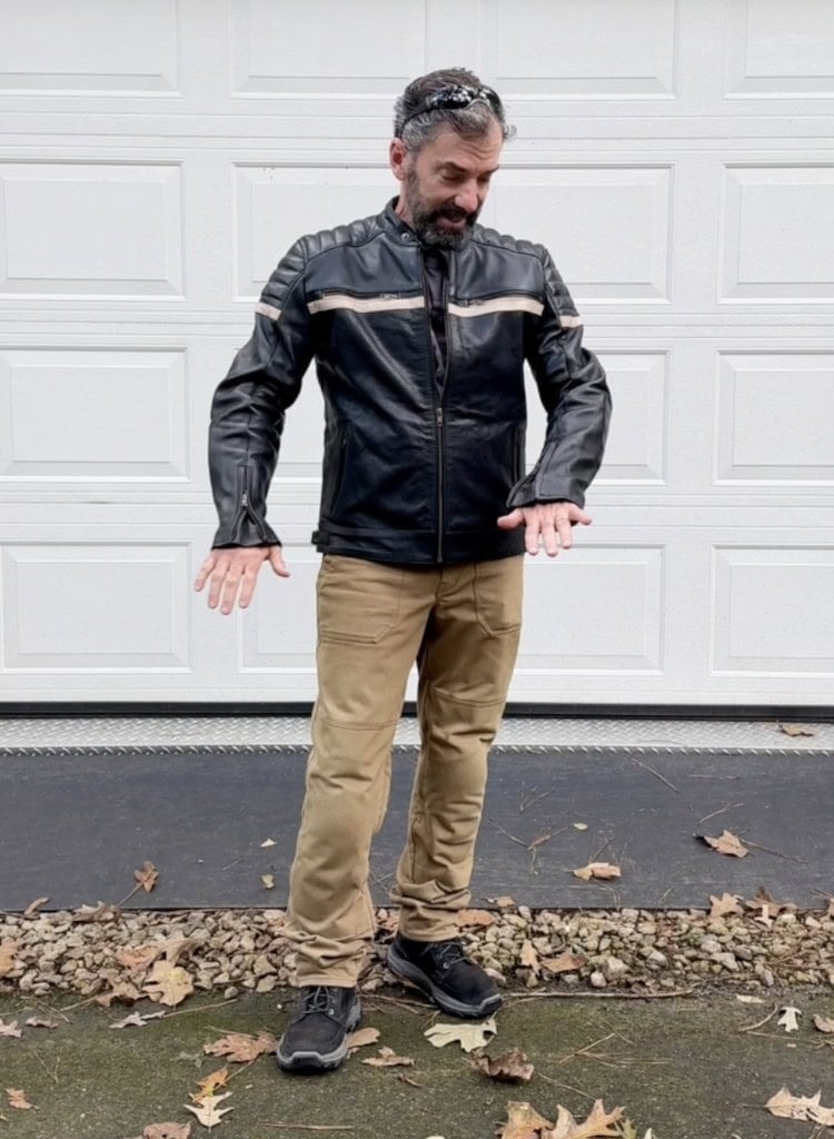 They asked for my dimensions, as in waist, chest, shoulders, arm length, etc. They offered me their “Black Café Racer Premium Leather Armored Motorcycle Jacket” to get custom-fitted, which I thought would pair perfectly with my Triumph Bonneville and Bell Stockwell Eliminator helmet. My favorite leather jacket has long been my no-name, off-the-rack biker jacket that I’ve had for over 30 years. It’s covered in pins and patches, is fading and cracking in places, but it fits me like a glove, and channels Brando and Ace Café vibes every time I wear it. I’ve also reviewed the REV’IT! Restless leather jacket, which I still enjoy wearing, but I’ve never been form-fitted with a jacket specifically tailored to my specs.