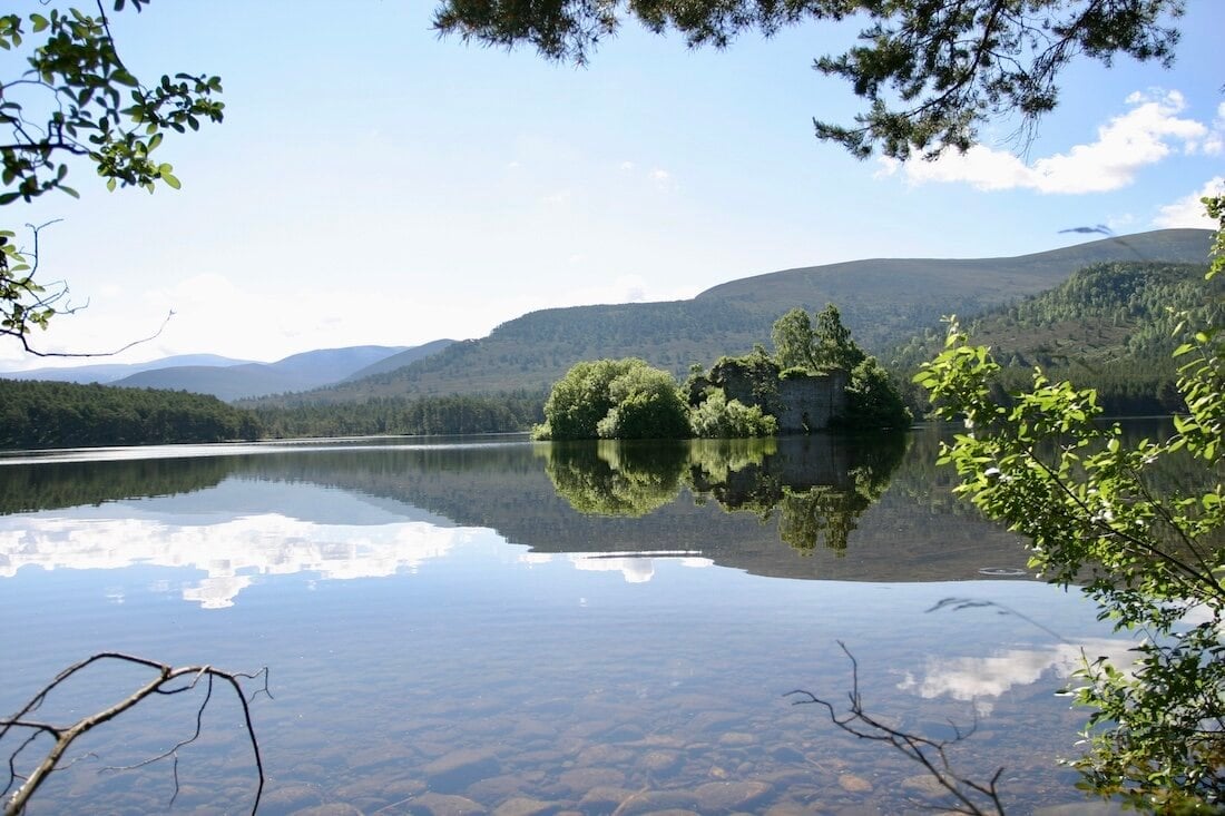The last day of our tour burst through the curtains early in the form of a cloudless day, with hot sunshine and yet more breathtaking scenery. The first order of the day, after our last 3,500-calorie Scottish breakfast, was to take a slow ride to the Rothiemurchus Estate. Here we enjoyed the most leisurely stroll of the trip, as the stunning natural beauty of the ruined Castle on Loch an Eilein became our next favorite place in Scotland. Said to be over 600 years old, the Loch was flooded to float timber down river many years ago and there are over 30 miles of walking trails, as well as a well stocked gift shop and a very run down limestone kiln.